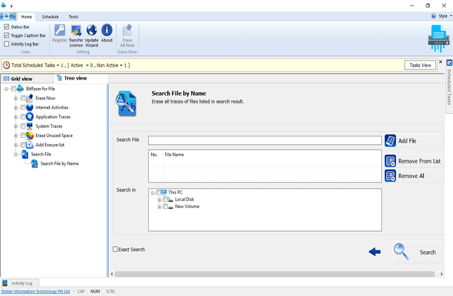 Stellar Data Eraser for File Stellar Data Eraser for File is capable of erasing files, folders, Application traces, system traces, internet activities as well as volumes from Windows based systems without leaving any scope for recovery. With this tool, all the crucial information stored on the hard drive in the form of files and folders can be erased permanently.